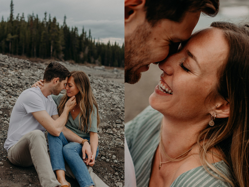 When you get people like Anna + Carter (and their pup Chance *the rapper*) to agree to adventure with you in the heart of Kananaskis because the mountains are what feels home to them- a whole shit load of magic is made. Sure the evening started out with a speeding ticket (truthfully I've talked my way out of so many GD speeding tickets on my way to/from/during sessions that this one was looooooong overdue, I thought I broke my toe and we dodged wildlife and a huge ass downpour just mere kilometers from where we were- but everything this night was about I won't ever forget.