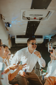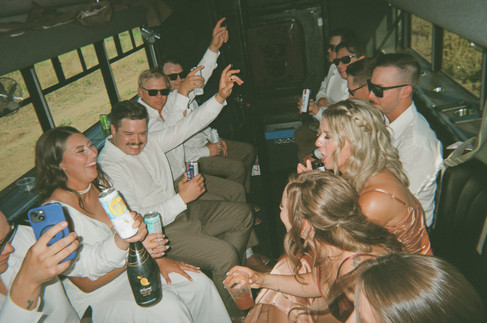 The wedding party piled in for happy hour drives around Medicine Hat, music up, and laughs/drinks spilling about through the bus. It was one of those moments where you could feel the freedom of the day — no rigid timeline, just friends celebrating friends.